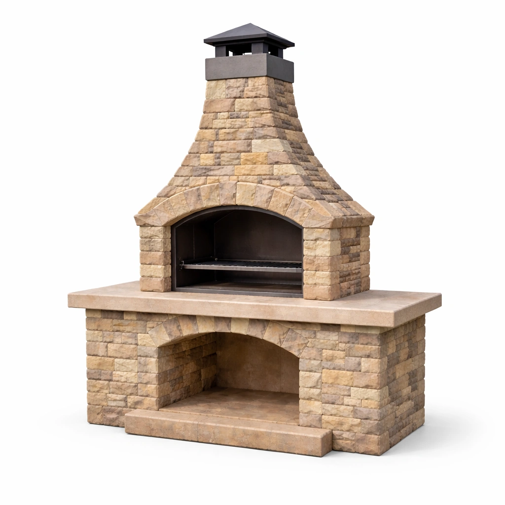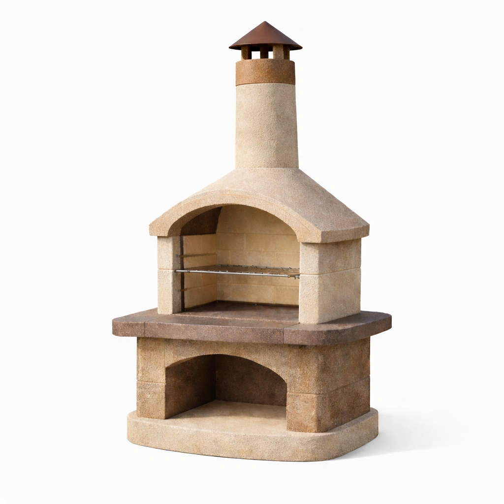 Barbacoa de cemento para exterior con chimenea